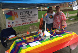 Pastor Tonja M. Gerardy of North Christian Church, an Open & Affirming Congregation in Columbus, IN, shared these pictures of their Pride presence last month.