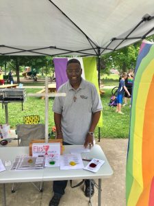 Rev. Jack Sullivan, pastor of FCC, Findlay, OH, proud to represent a congregation that welcomes all. FCC Findlay OH displays their commitment to justice at Pride. FCC Findlay, OH, displays their welcome at Pride.