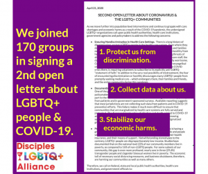 The letter was initiated by a coalition of six organizations: The Whitman-Walker Institute; the National LGBT Cancer Network; GLMA Health Professionals Advancing LGBTQ Equality; SAGE; New York Transgender Advocacy Group; and National Queer Asian Pacific Islander Alliance. The full letter text, full signer list, and additional organizational response resources can be found online at this link: https://cancer-network.org/coronavirus-2019-lgbtq-info.
