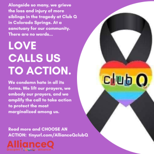 “Alongside so many, we grieve the loss and injury of more siblings in the tragedy at Club Q in Colorado Springs. At a sanctuary for our community. There are no words. I have no words. Love calls us to action. We condemn hate in all its forms. We lift our prayers, we embody our prayers, and we amplify the call to take action to protect the most marginalized among us.